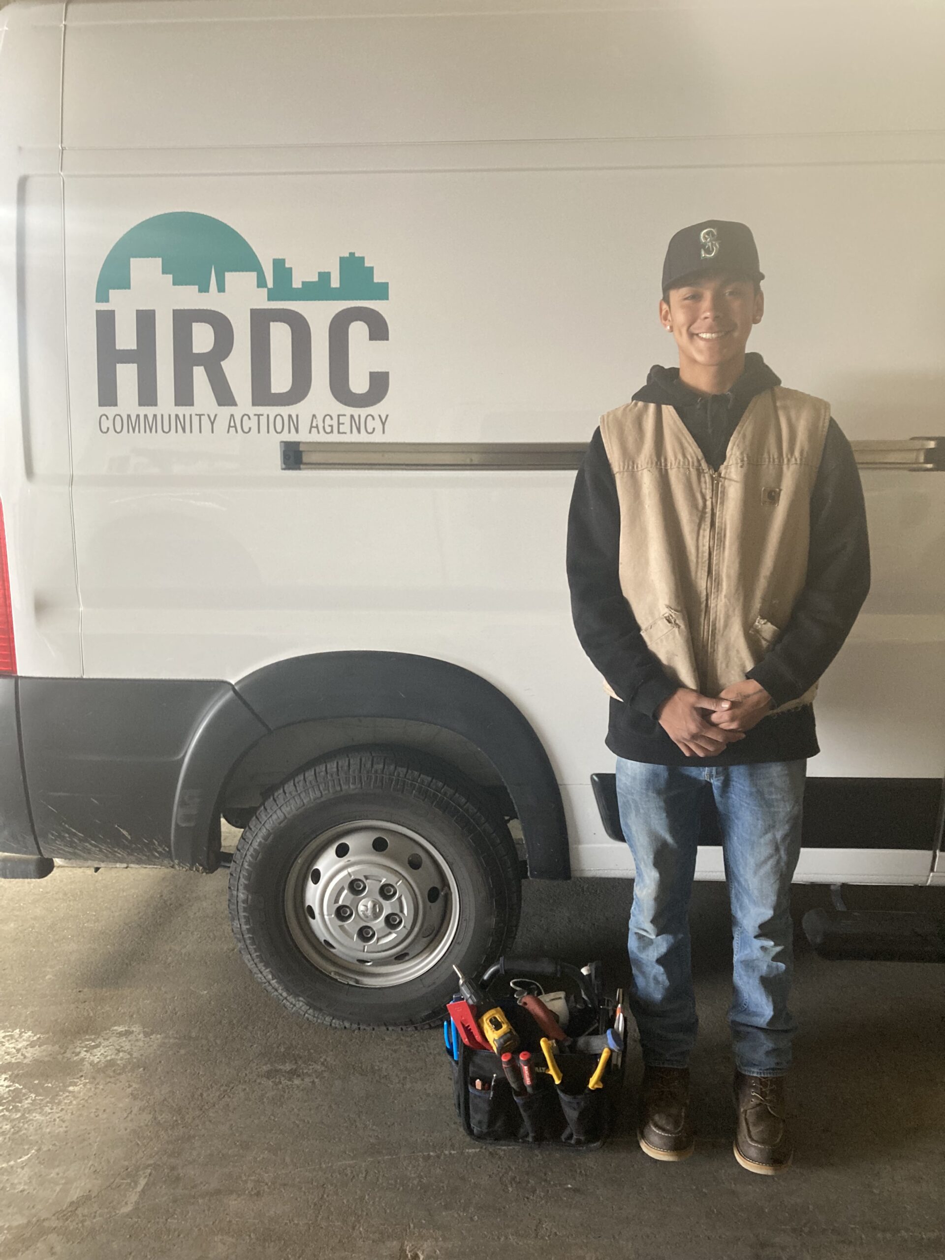 After being approved for the Youth Homeless Demonstration Project (YHDP), Jasper got a job in the weatherization department at HRDC through the Workforce Innovative Opportunity Act. He says this line of work opened up a lot of career opportunities that he is interested in. The Weatherization Director at HRDC District 7 says Jasper has done a great job working with the weatherization crew and adds he is always happy and has a positive attitude.
